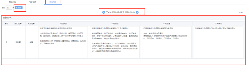点击部门周报,可填写部门周报(只能修改本周周报);