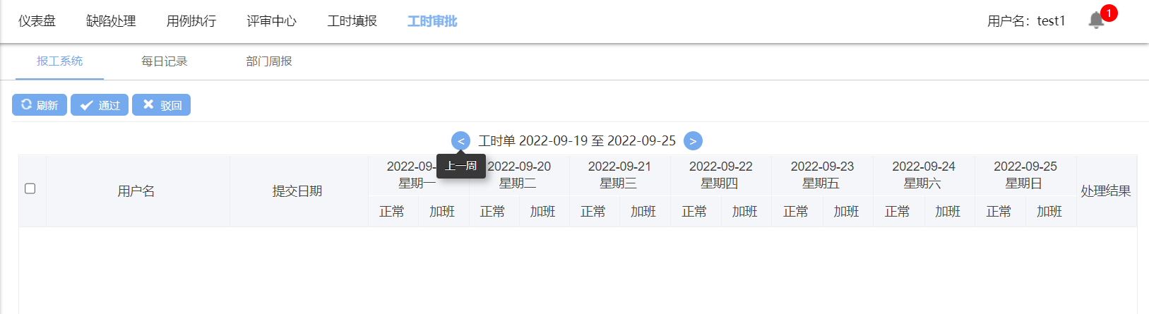 点击【工时审批】进入到工时系统模块,工时系统模块包含报工系统、每日记录、部门周报三个子模块。
