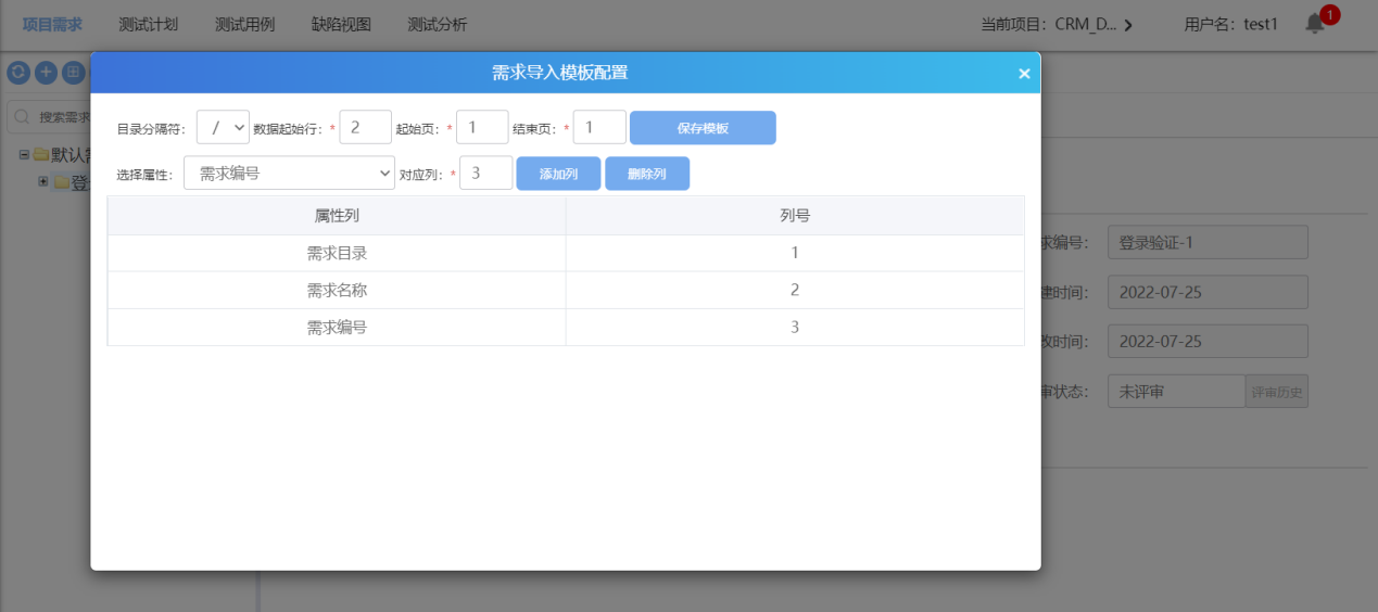 3. 需求目录和需求名称是必须配置项;强关联关系下需求编号必须配置;