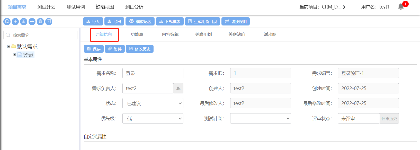 基本信息:可修改需求的名称、需求负责人、状态、优先级、关联版本等信息;