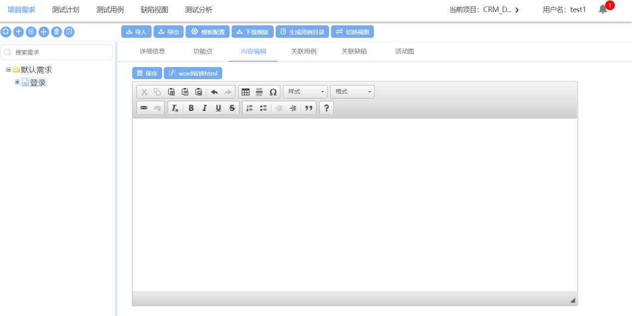 内容编辑可以通过导入docx文件,点击word转换HTML,添加内容;也可以直接输入内容,点击保存,添加内容成功;