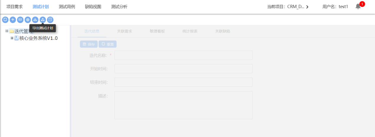 选中一个迭代 ,点击导出测试计划,将当前测试版本导出至本地;