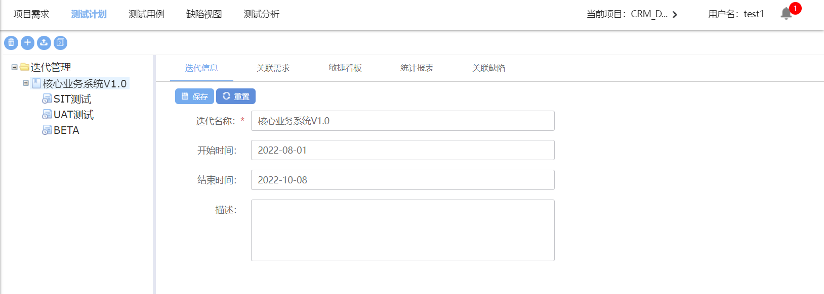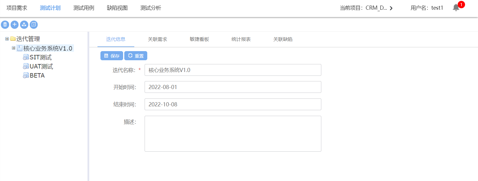 选择一个迭代,可以查看版本信息;也可以修改迭代信息,输入内容后,点击保存按钮,修改迭代信息成功;