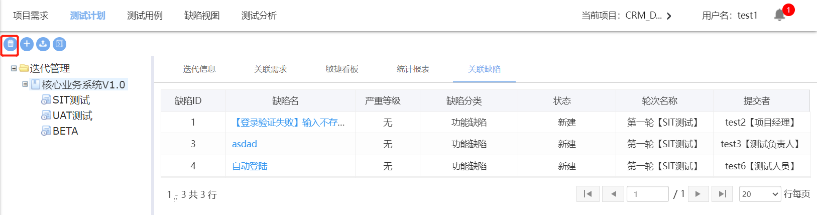 选中一个测试计划,点击删除按钮,可删除该测试计划;