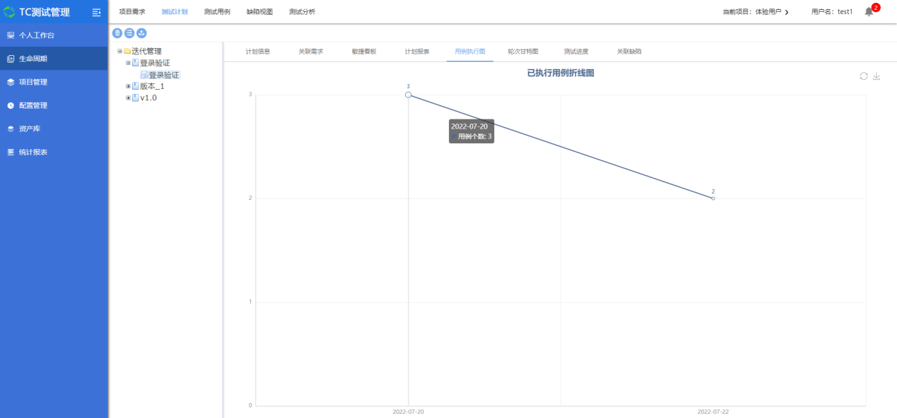 选择一个测试计划,点击用例执行图,可以查看该计划下的用例执行状况;