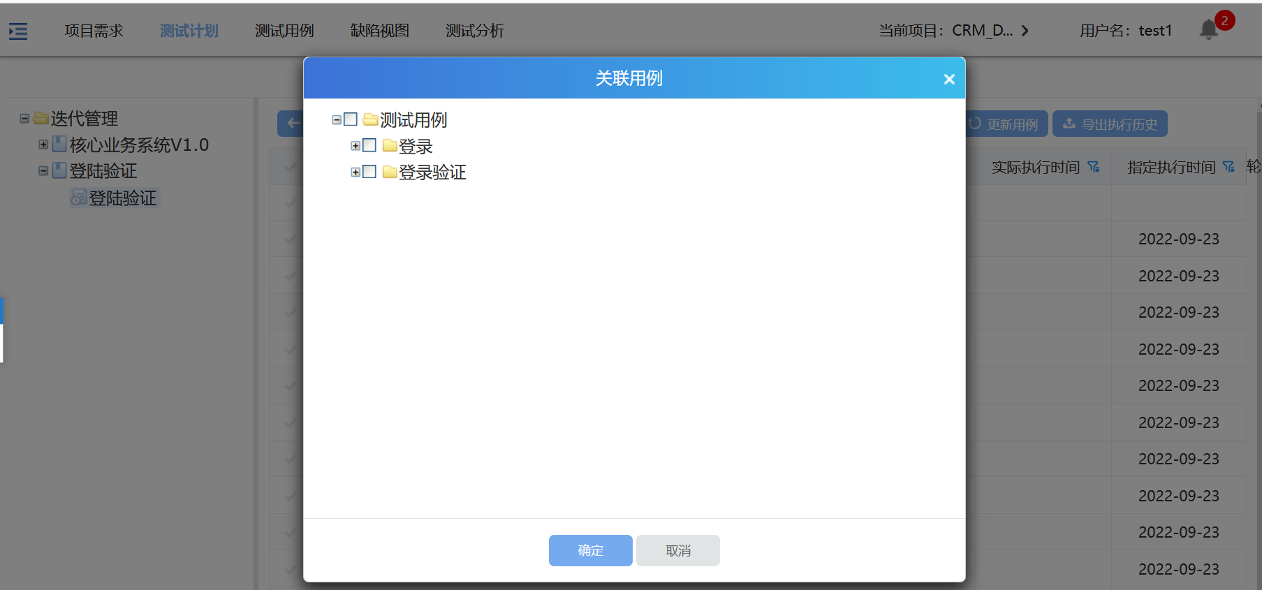在轮次中,点击添加用例,勾选需添加的用例,点击确定后,轮次关联用例成功;