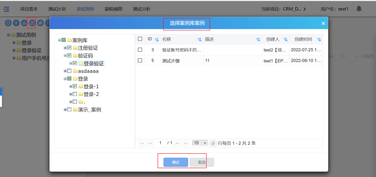 导入案例库案例,勾选案例库的案例,点击确定,即可导入案例库案例;