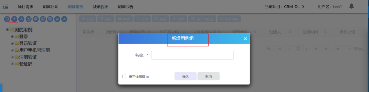 点击新增组,输入用例组名称,点击确定后新增成功;