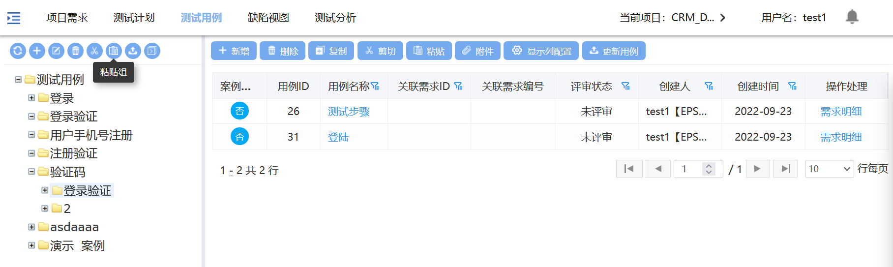 用例剪切后,重新选中一个用例组,点击粘贴,用例组粘贴成功;(用例不可以粘贴到原目录);