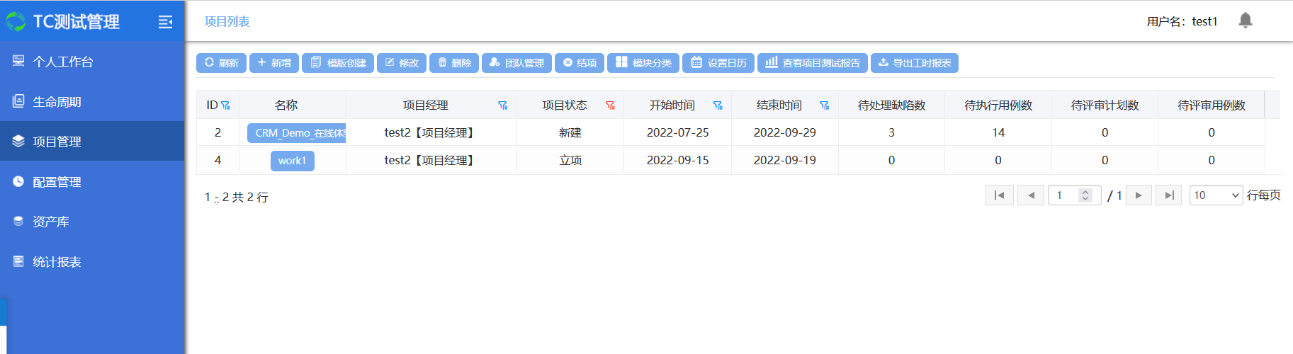 点击【项目管理】进入项目管理模块,项目管理模块主要是对项目进行新增、修改、删除项目以及项目团队管理,双击可以查看项目报表详情等。