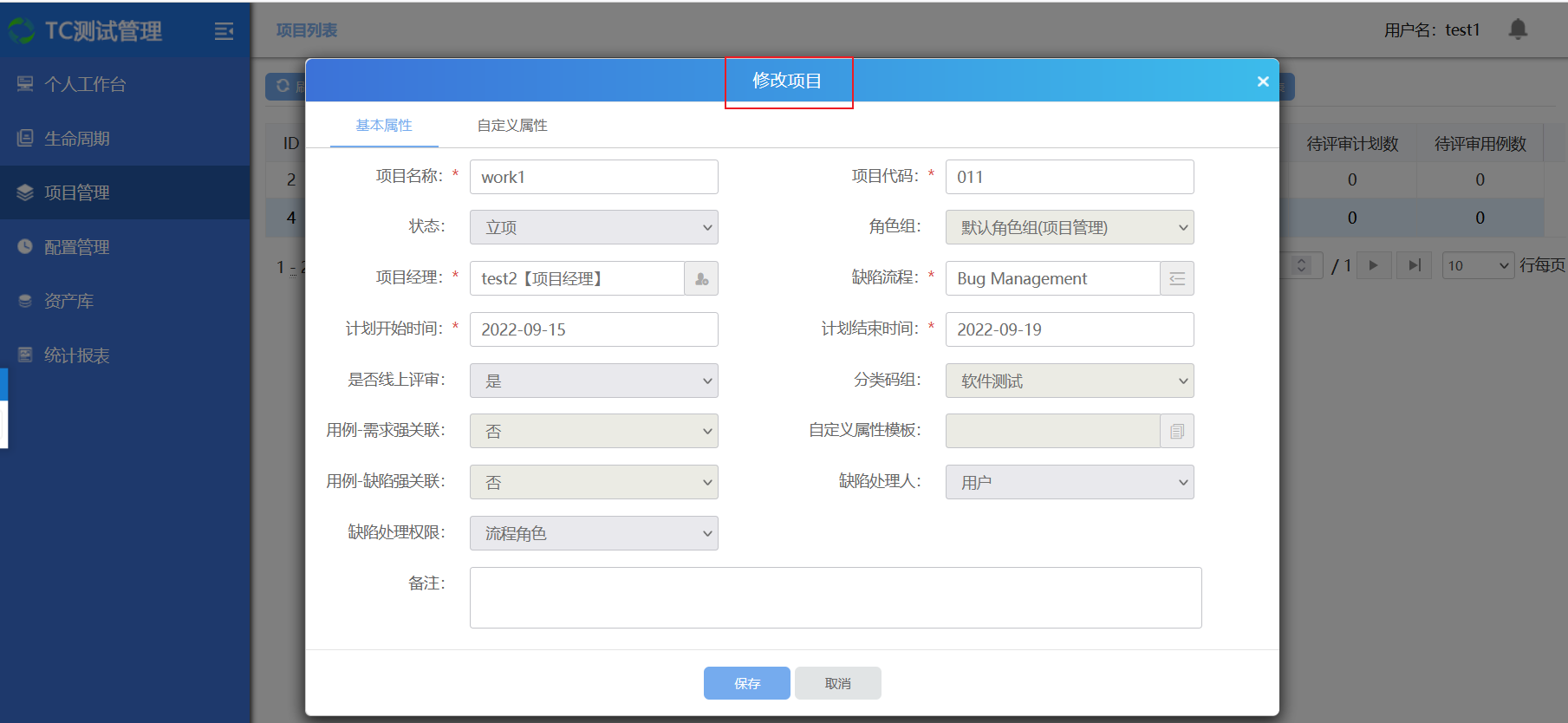选中项目,点击修改;弹出修改项目界面,填入修改信息保存后,修改完成;
