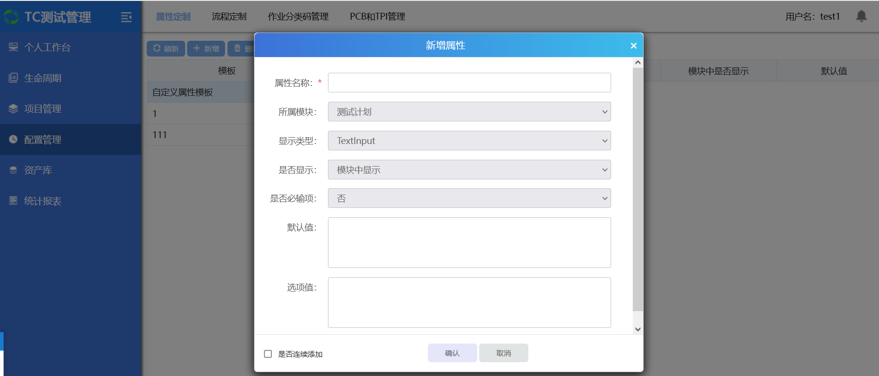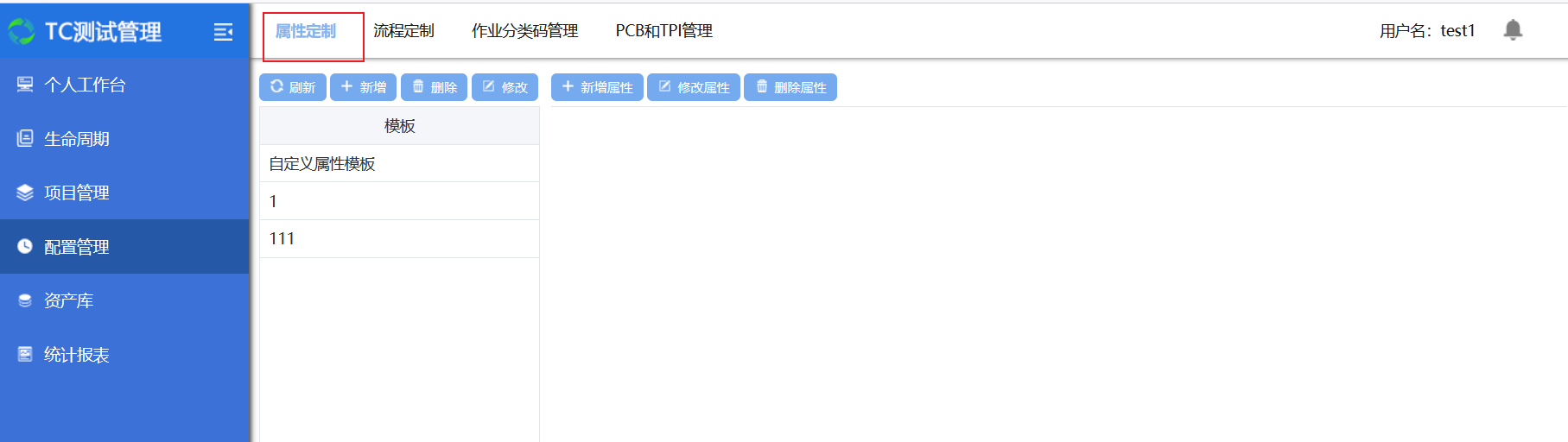 为了使工具更加贴近项目的实际需要,这里我们需要用到【属性定制】。(注:一旦项目定制了属性,就不能修改了),点击【属性定制】进入属性定制模块