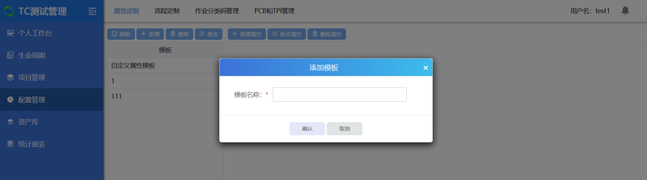 首先新增模板,点击【新增】按钮,进入到添加模板页面,输入模板名称,点击确定按钮,模板添加完成。