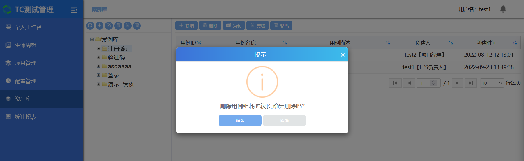 选中一个用例组,点击删除按钮,即可删除该用例组;
