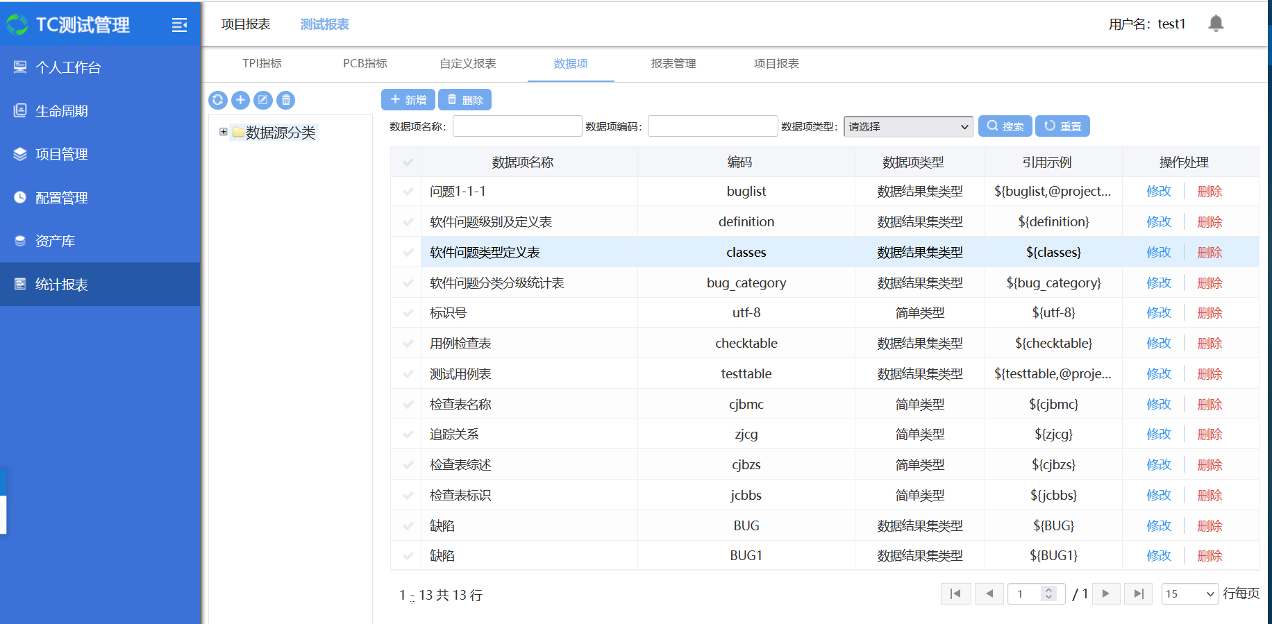 选中数据源分类,点击【新增】按钮,进入到新增数据项页面;