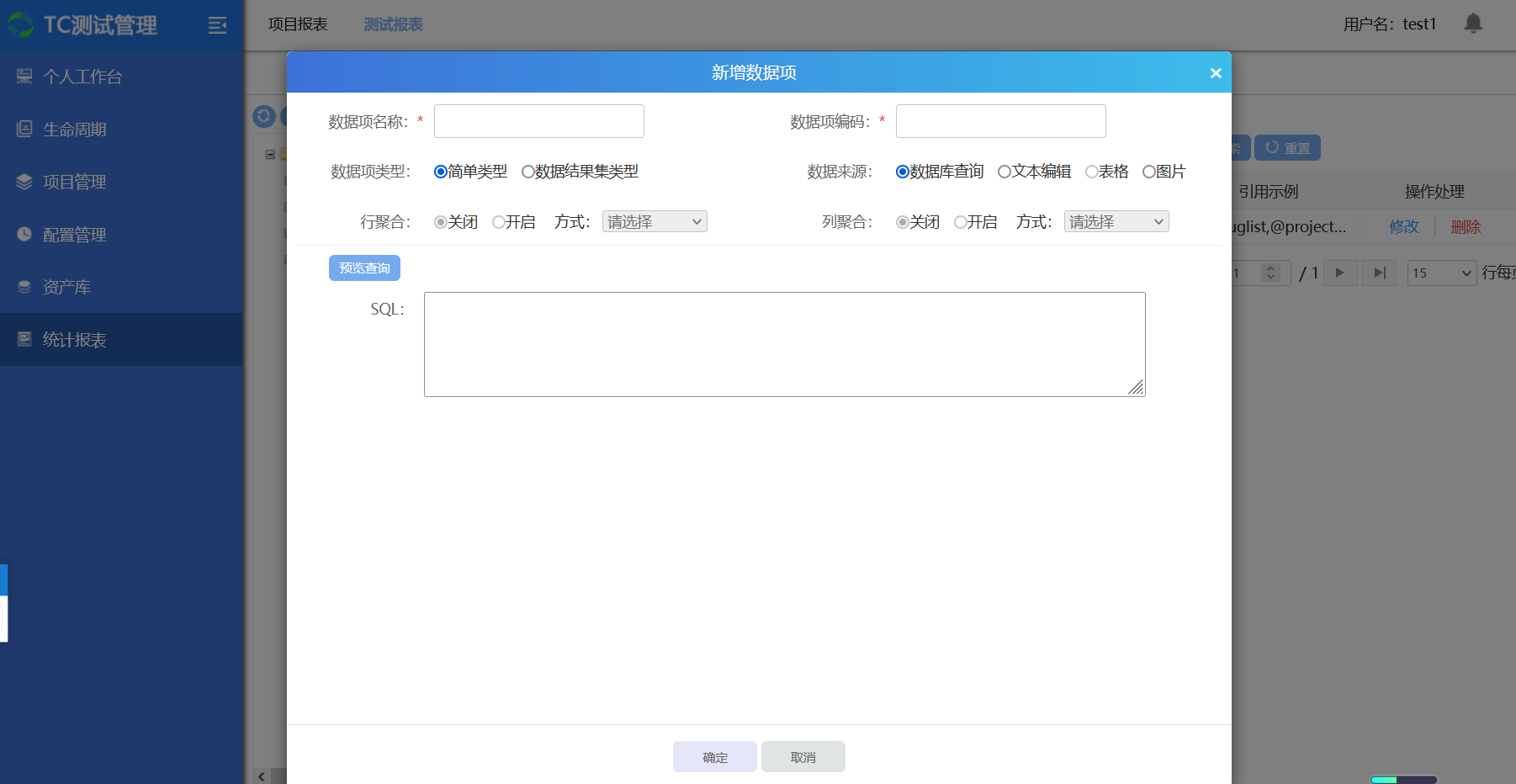 显示数据查询结果,用列表的形式展现结果,验证用户查询目标与查询结果是否一致,查询语句是否有误,确认无误后,点击【确定】保存新增数据项,点击【取消】则撤销本次操作回到数据项界面 |