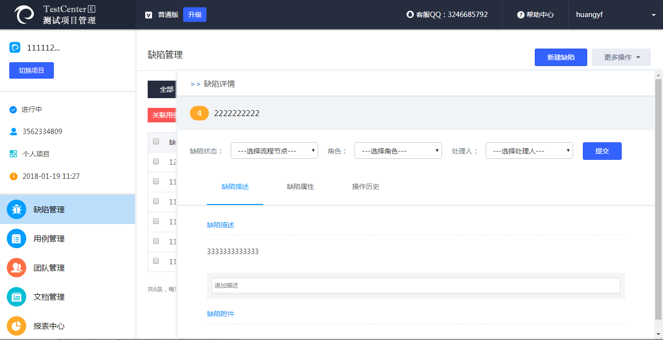 【进入项目】-【缺陷管理】