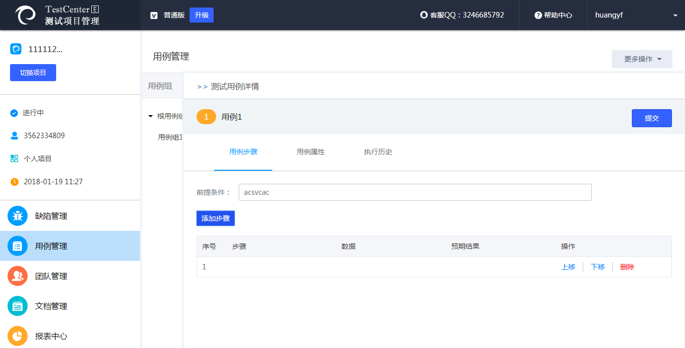4、点击用例名称,添加用例步骤;