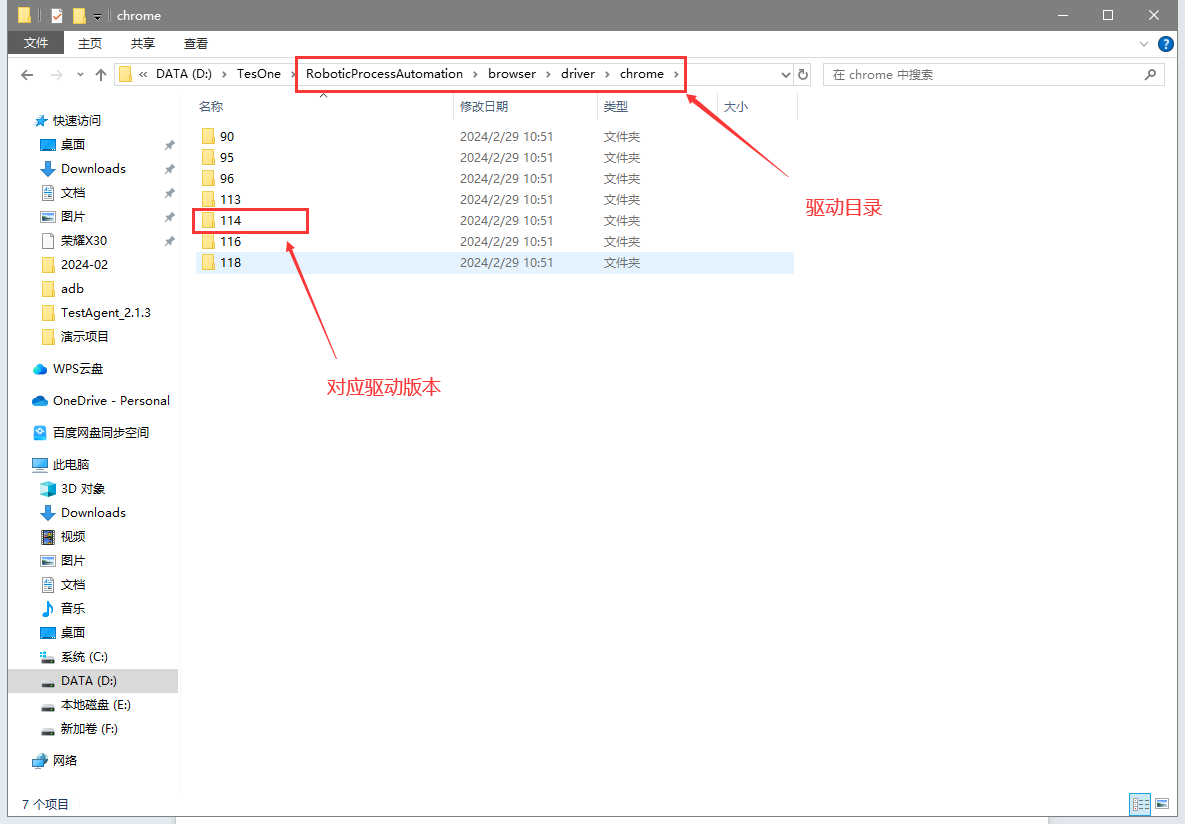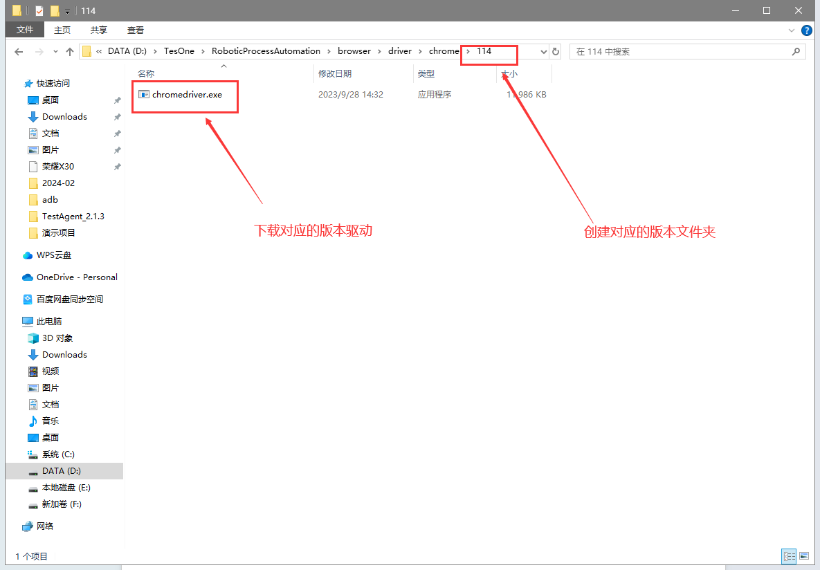 第三步:如果驱动目录下不存在与浏览器对应般的驱动,需创建对应版本号的文件夹,下载对应的版本驱动。