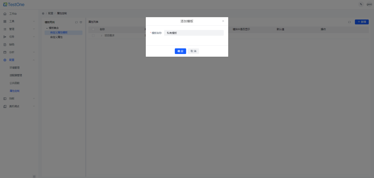 2)输入模板名称,点击【确定】按钮,新增完成。