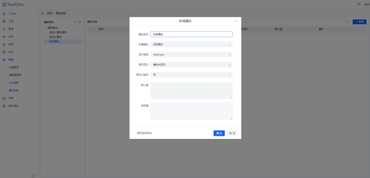 1)选中模板目录,点击【新增】按钮,弹出“新增属性”弹窗。