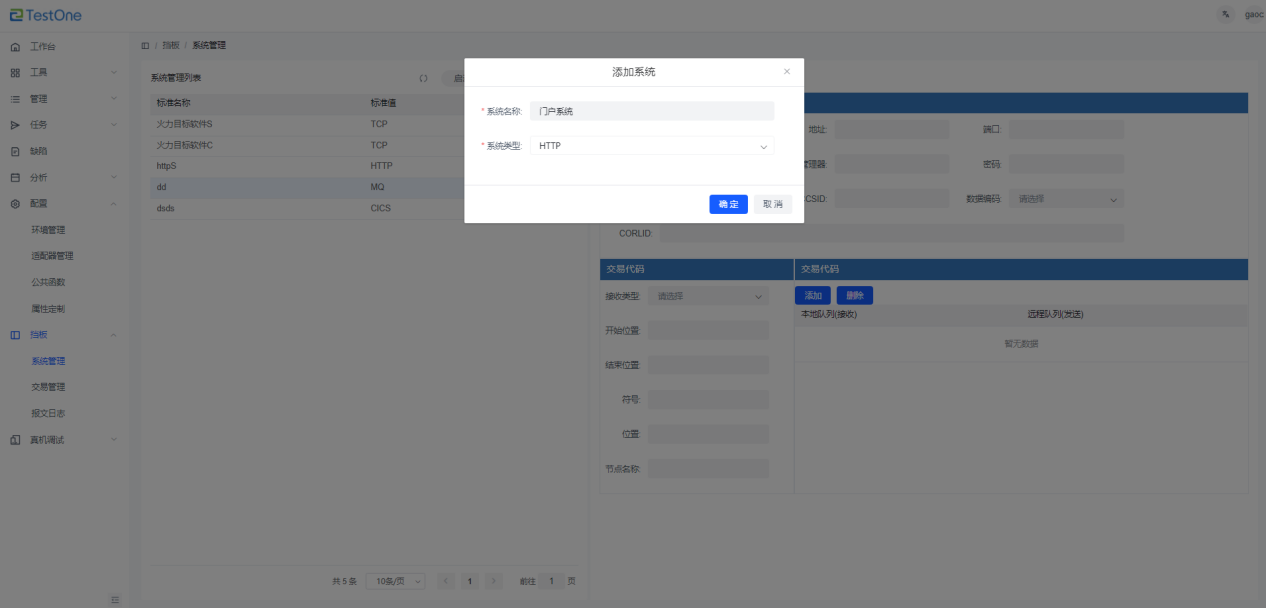 1)点击【新增】按钮,弹出“添加系统”弹窗。