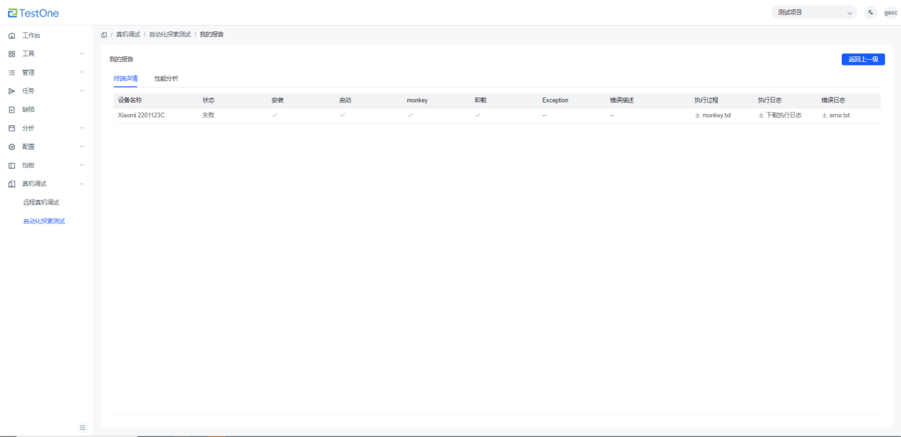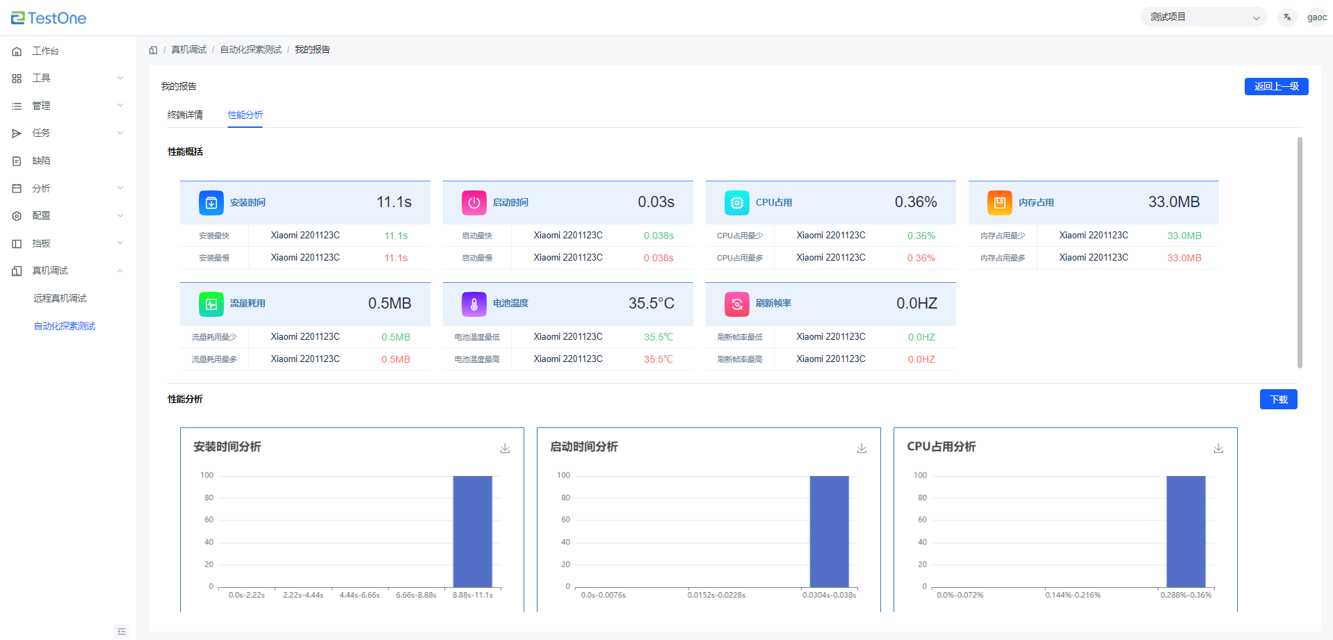 4)点击【性能分析】,进入“性能分析”报告页面,查看性能测试数据。