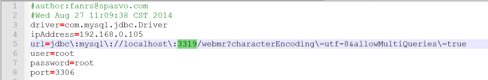 首先找到目录:..apache-tomcat-7.0.47webappsAllMachineDebugconf下的db.ini文件,修改端口号、数据库用户名、数据库密码。