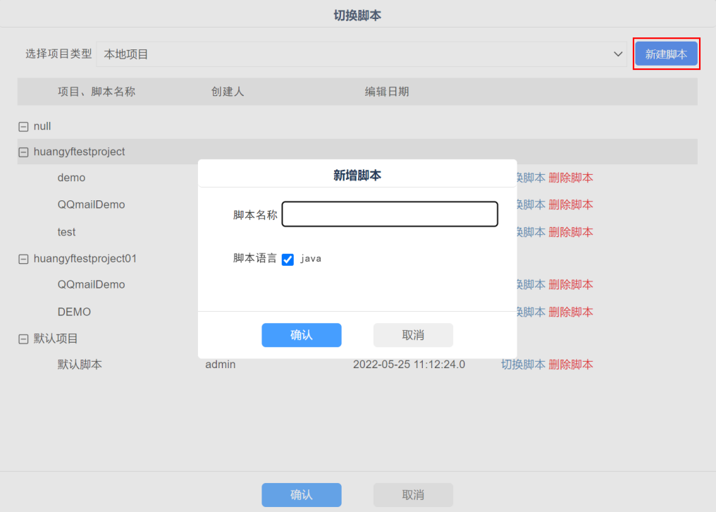 1)支持本地项目、ATF项目下新增、删除、修改项目;